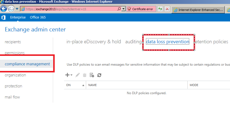 Open EAC -> Click on Compliance Management -> and select Data Loss Prevention