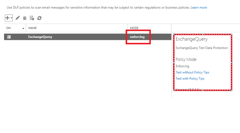 We are done with DLP created and it will show an option as enforcing and we can see few other options to test the created DLP policy