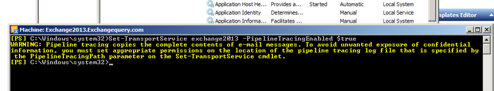 Set-TransportService Exchange2013 -PipelineTracingEnabled $true