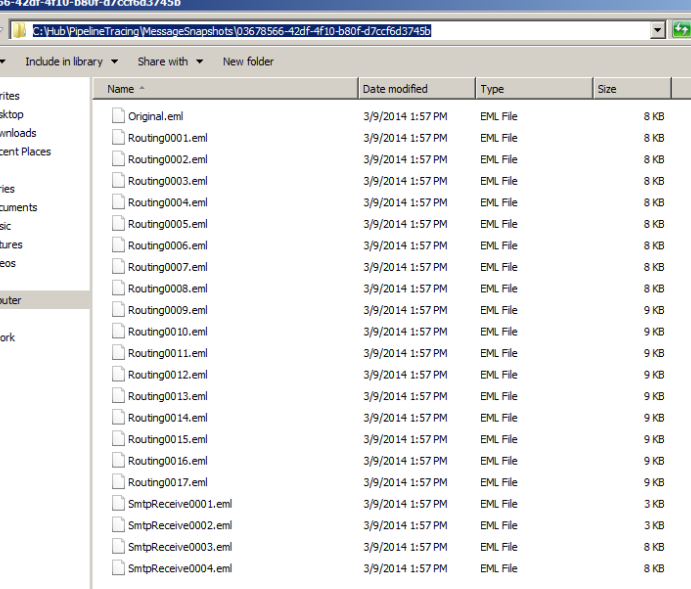 When you open this alpha numeric folder you can see the Message transactions as below. Also it has the original eml file for comparing with the message transactions.
