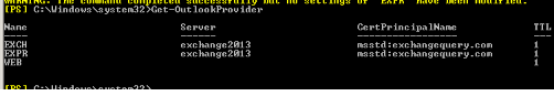 Set-OutlookProvider -Server exchange2013CAS EXCH -CertPrincipalName msstd:exchangequery.com