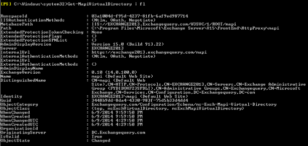 You can use the below command to check the authentication method for mapi virtual directory if you have enabled mapihttpenabled protocol.