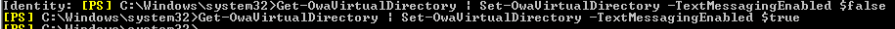 Get-OwaVirtualDirectory | Set-OwaVirtualDirectory –TextMessagingEnabled $False