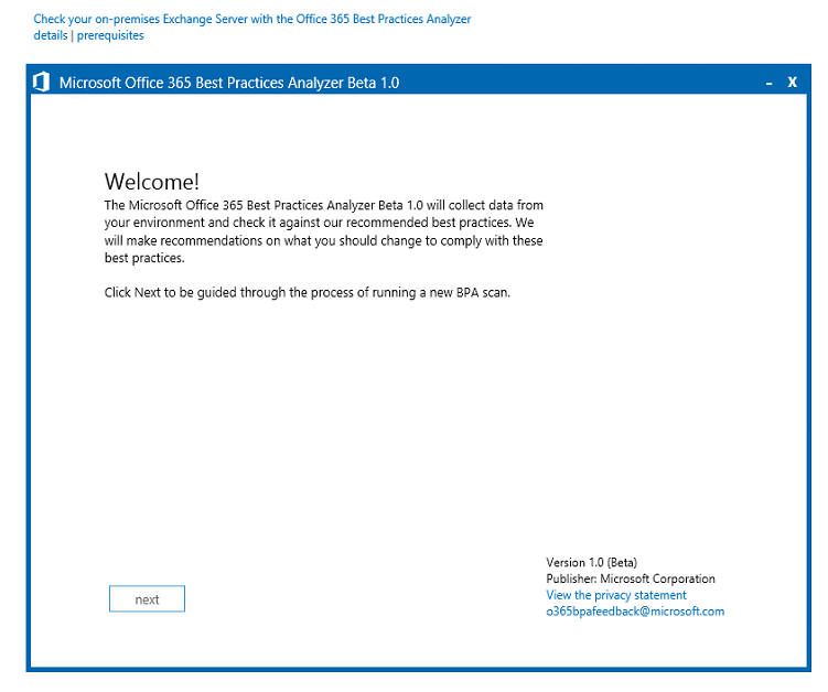 Like the same in Exchange 2013 SP1 and later versions we have the same Office 365 best practice analyzer tool available in Exchange 2016 as well.