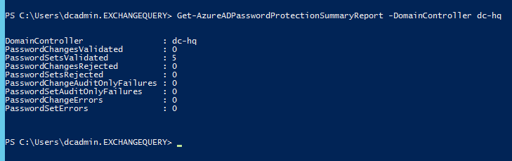 Get-AzureADPasswordProtectionSummaryReport -DomainController DCHostName