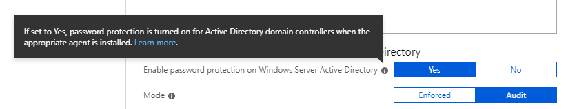 After this login to Azure AD and enabled the password protection on Windows server Active Directory. Always strictly recommended to start only in Audit mode to understand the current password security and user compliance from the logs.