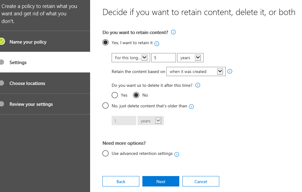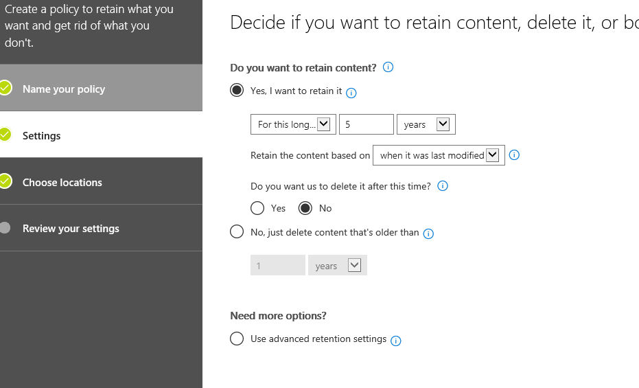 Its always better to configure retention for office 365 work loads in order to ensure that the data is available as per the company legal requirements. Usually we pay more attention to Email data and retention policies are applied to all mailboxes, however we might miss out to configure the retention on other work loads.