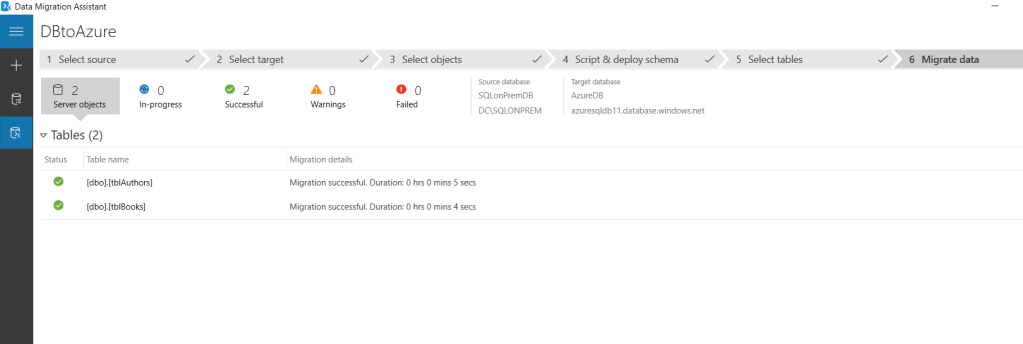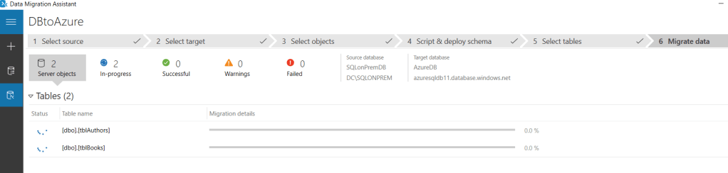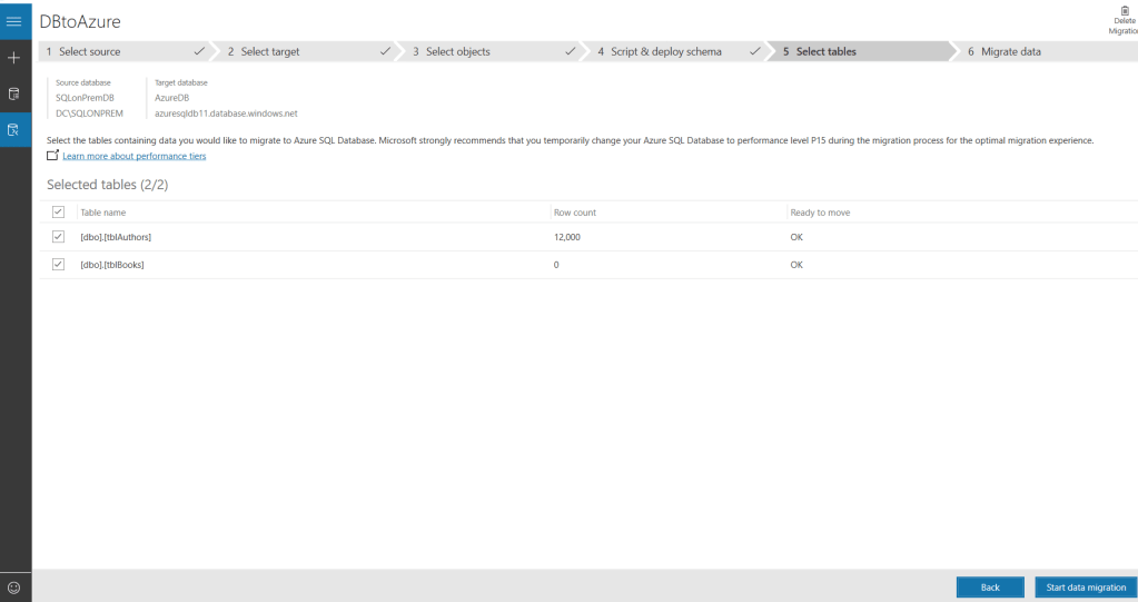 Later once the schema is populated successfully now we have an option to migrate the data.Click on migrate data.