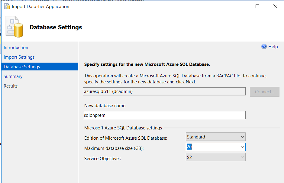 Now this bacpac file needs to be imported to the Azure SQL database. Now we need to connect to the Azure SQL database to from SQL Management Studio.
