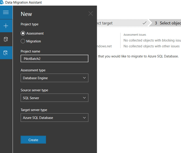 Here we have two options assessment or migration. Assessment helps us to identify the readiness required for this migration and will let us know if any connection or prerequisites missing. Here we can click on assessment.
