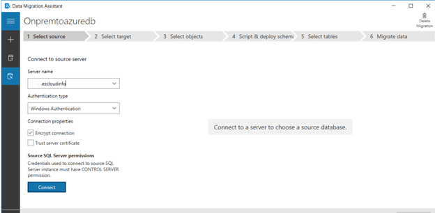 Once after its authenticated successfully now we have an option to choose the database that needs to be migrated.