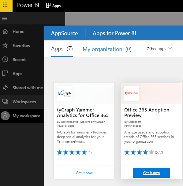 Now we will have the office 365 adoption preview connected to the associated work space.