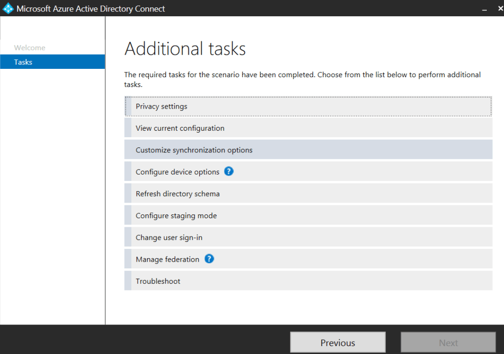 Login to Azure AD with global admin credentials and select customize synchronization options