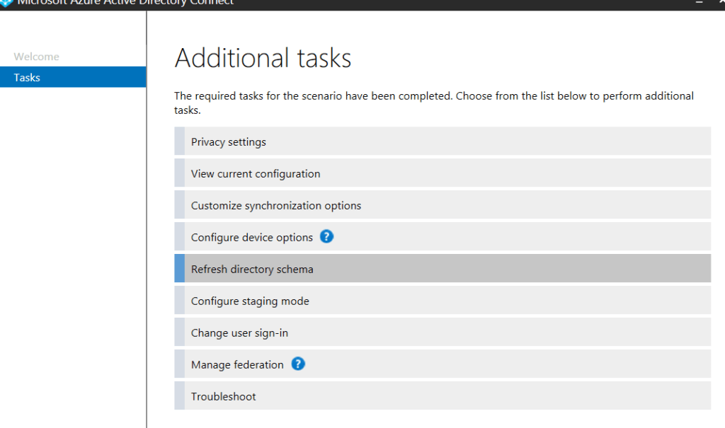 In the third scenario where we do not own a exchange hybrid and if the developer is using Azure AD via graph API and expecting these values on azure AD for the customization. In this case we have a better option of extending these values from the Azure AD connect by running them again and selecting only the required AD extension attributes.