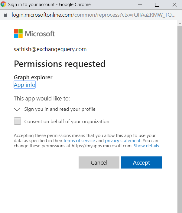 We will be asked for the admin consent and needs to be selected based on the requirement.