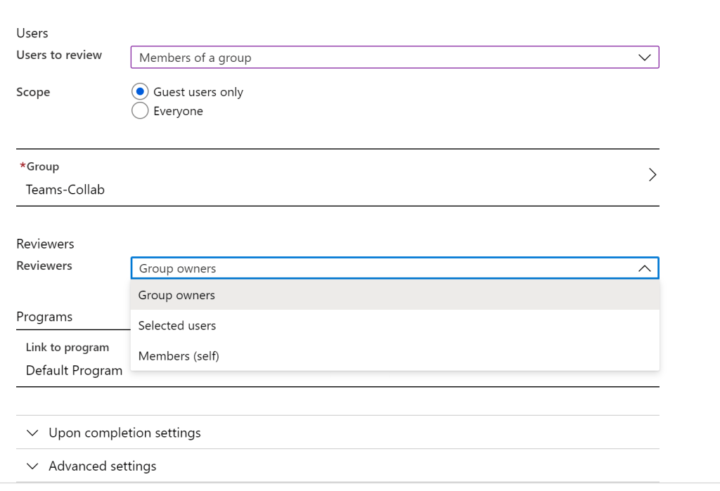 We can set the number of times, end date and the scope to guest users only. And target the external groups which have the guest users added. Probably this part needs to be reviewed periodically and add the new groups in this list.
