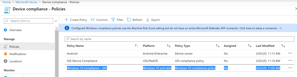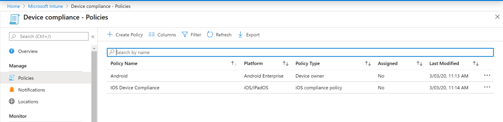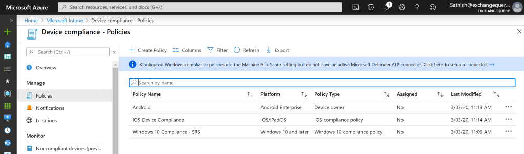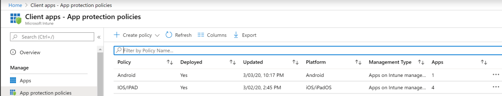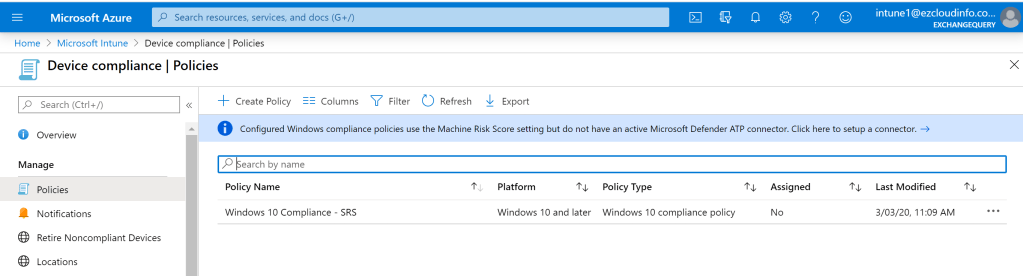 Policies visibility from Global Admin account where we could see all the policies in the intune portal.