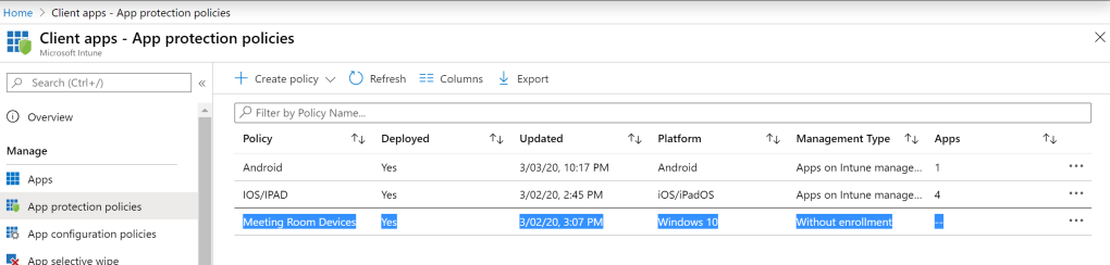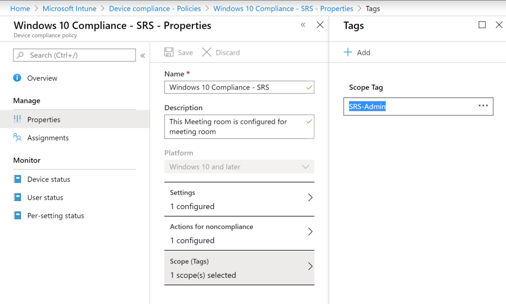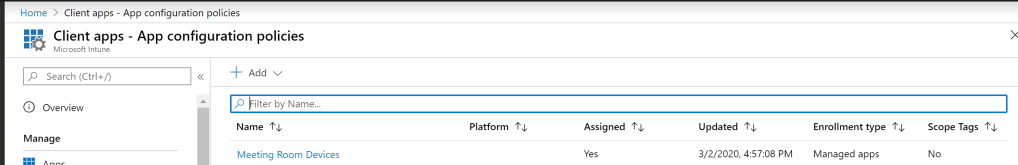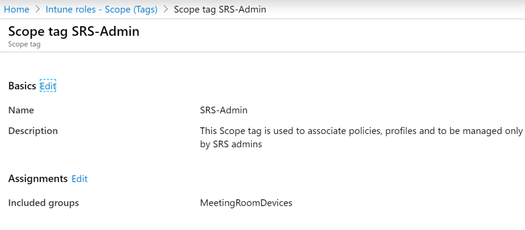 In the same way we did for BYOD devices meeting room policies were tagged to this scope tag.