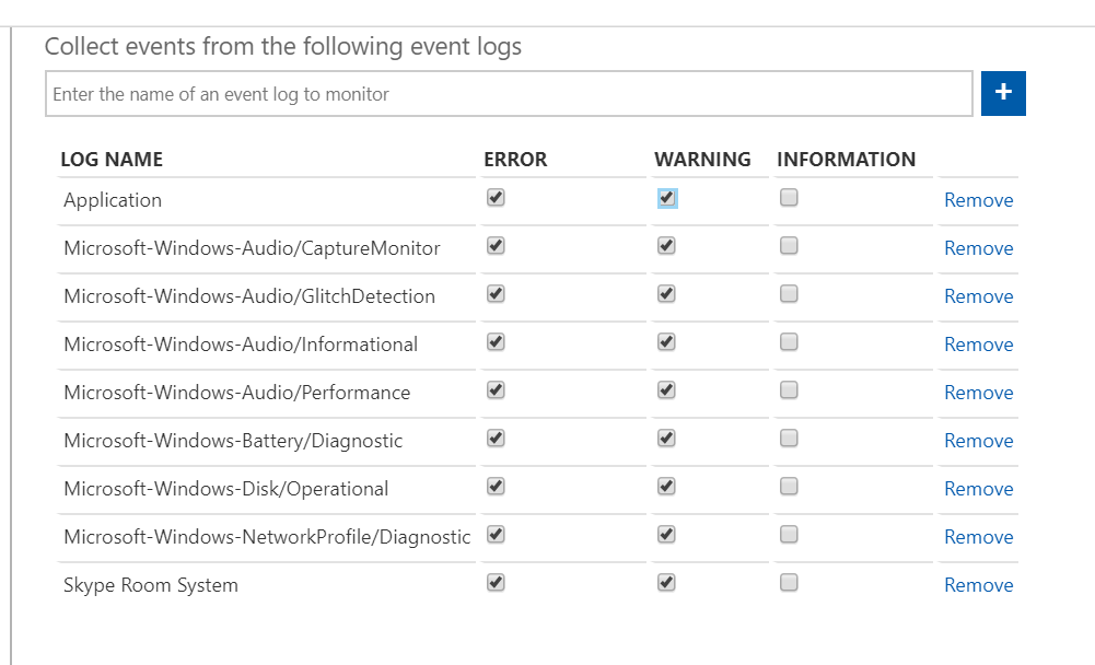 In our case for monitoring the teams device, we need to collect teams app logs and few hardware related events. We will look into configuring them now.