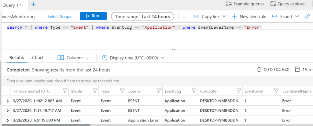 There are lot of queries which can be built from these collected events. Having collected these events , we can configure them to display as dashboards and collect alerting mechanisms for the critical events. In the next post we will have a look at how to configure the alerting systems for critical events that’s happening on the meeting room devices.