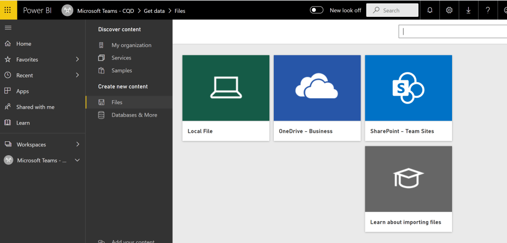 Option 2: Import the Teams PowerBI Templates report and publish them from the desktop.