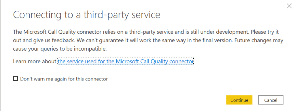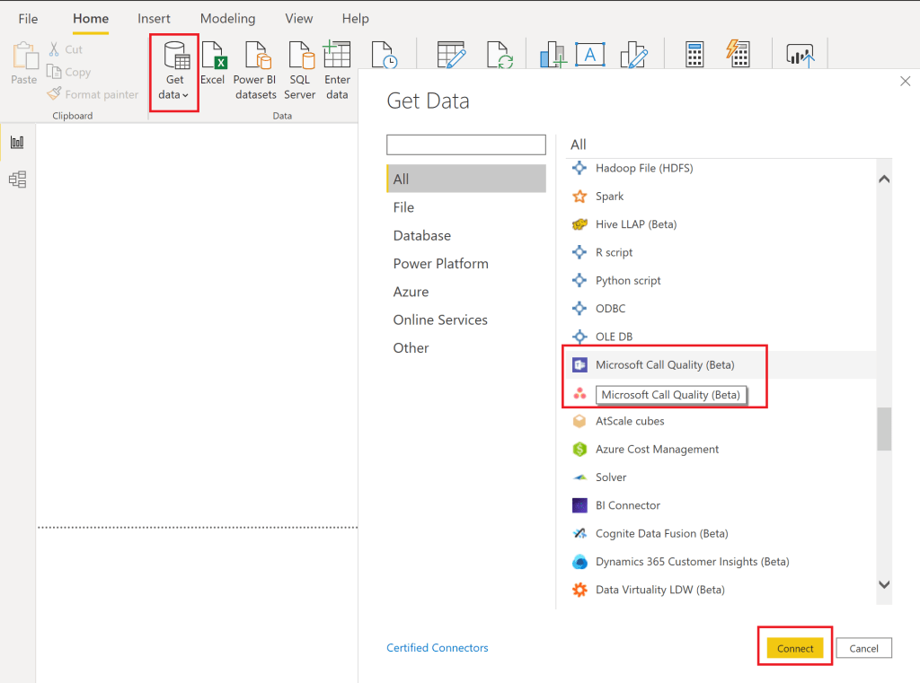 In-order to set the data source open Power Bi desktop – Select get data – choose Microsoft Call Quality (Beta)