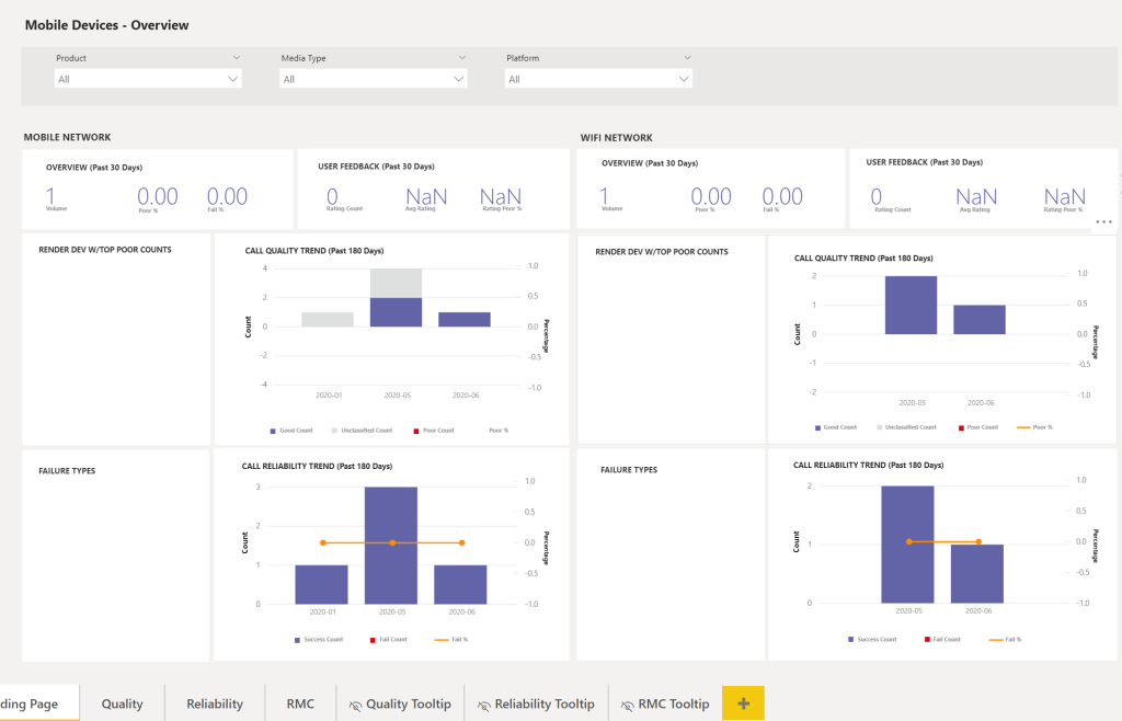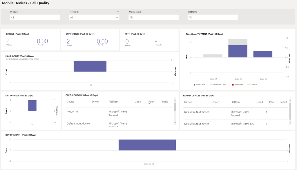 We get the mobile devices call quality with rendered devices, call quality trend and number of conference attended from the mobile.