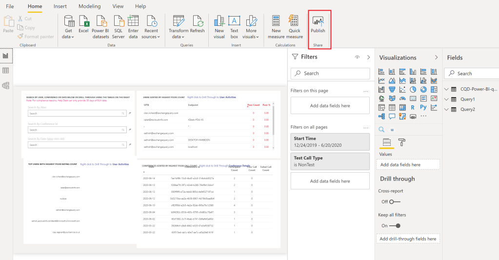 These are customizable templates which can be used to analyze data. These above are PBIT file formats which can be used from PowerBI desktop which has the data source configured. If we need to open them directly from the powerbi portal they need to be renamed as pbix. If we are importing them from the powerbi desktop the following file MicrosoftCallQuality.pqx needs to be imported to the location [Documents]\Power BI Desktop\Custom Connectors folder.