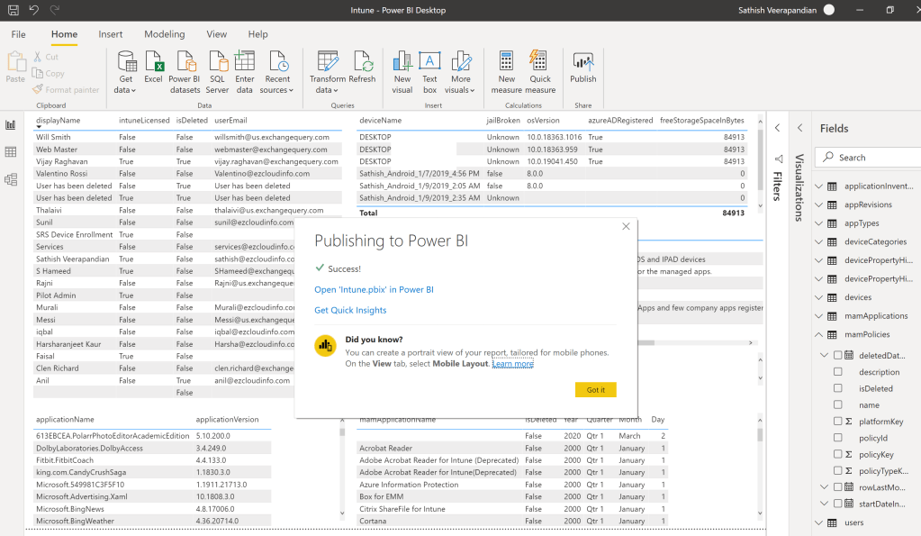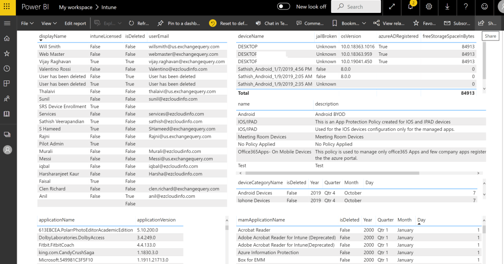 Here just for an example have loaded few datasets that might be helpful for us in creating a reporting for the intune statistics.