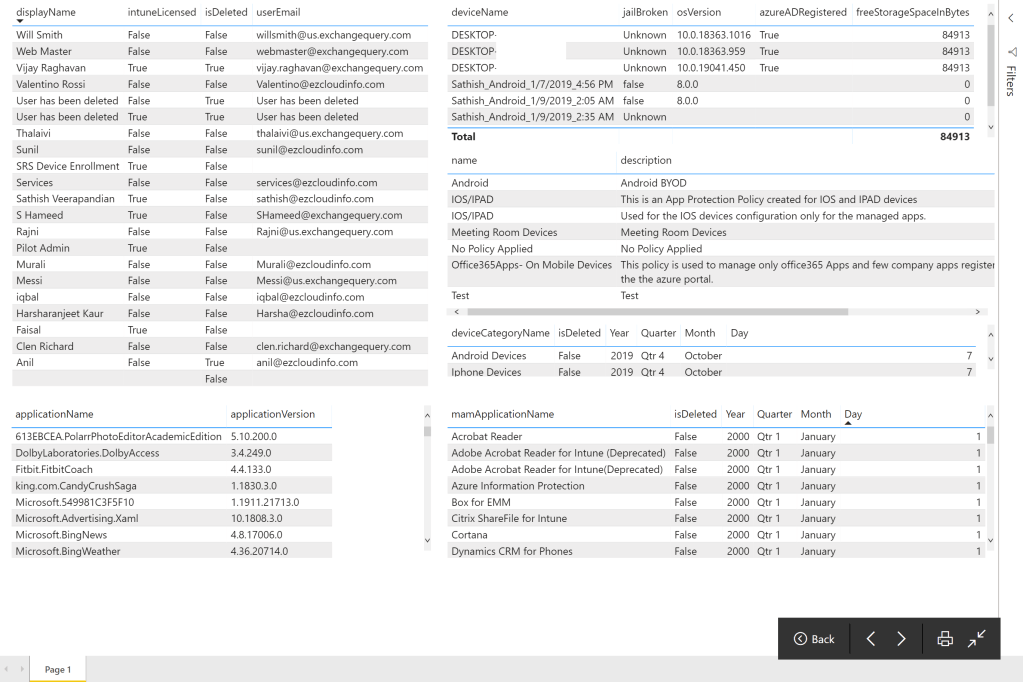 For instance we could measure how many users have intune licensed , jailbroken devices , azure ad registered devices , trends of OS versions getting enrolled in intune and even see the amount if MAM getting enforced on devices.