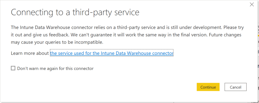 One important point to note here is that the Intune Data Warehouse only contains Intune data. Just in case if co-management is utilized then additional steps to retrieve the data from configuration manager is required.