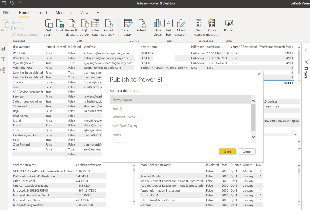 Once connected we can see there are 48 datasets that can be helpful in building the required reports and the dashboard for Microsoft Intune.