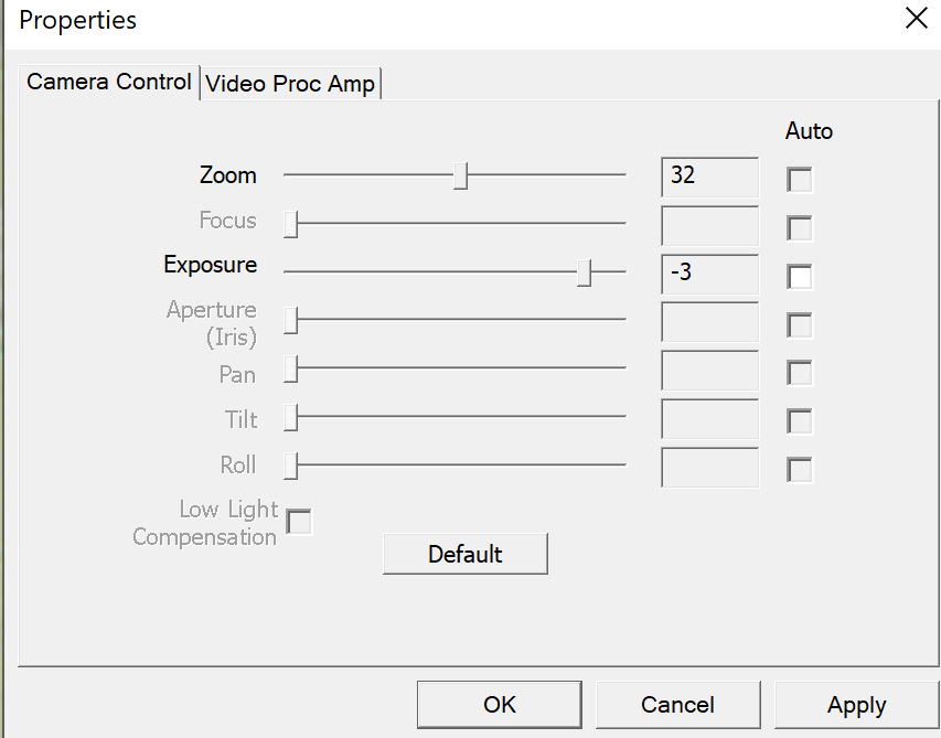When further drilled down into the configure video option we can see options. I was able to change zoom, focus and exposure and might change here based on the camera that is connected.