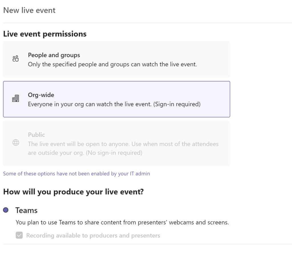 So created live event with org wide option.