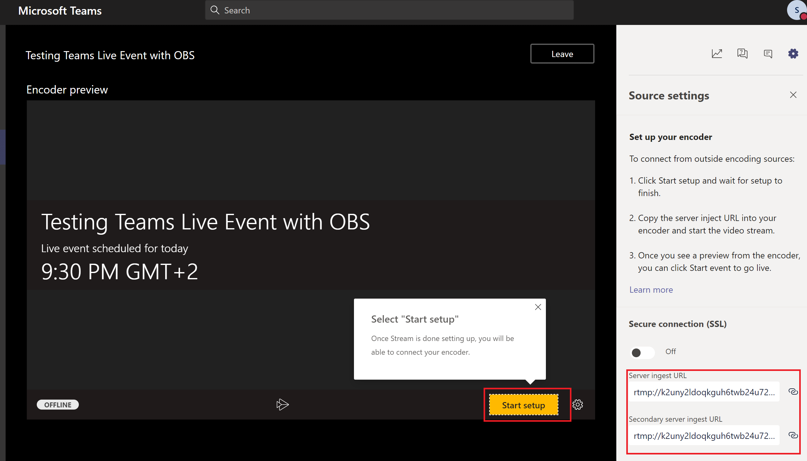 The moment when the live event is created we could see the server ingest url is been generated. So now the required url to establish the connection from OBS has been generated here we need to populate this value on the OBS studio app.