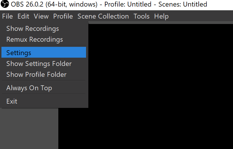 From the OBS Studio app navigate to settings