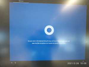 Now we have to wait until Cortana has ended the introduction before we can continue with the Region Select menu.