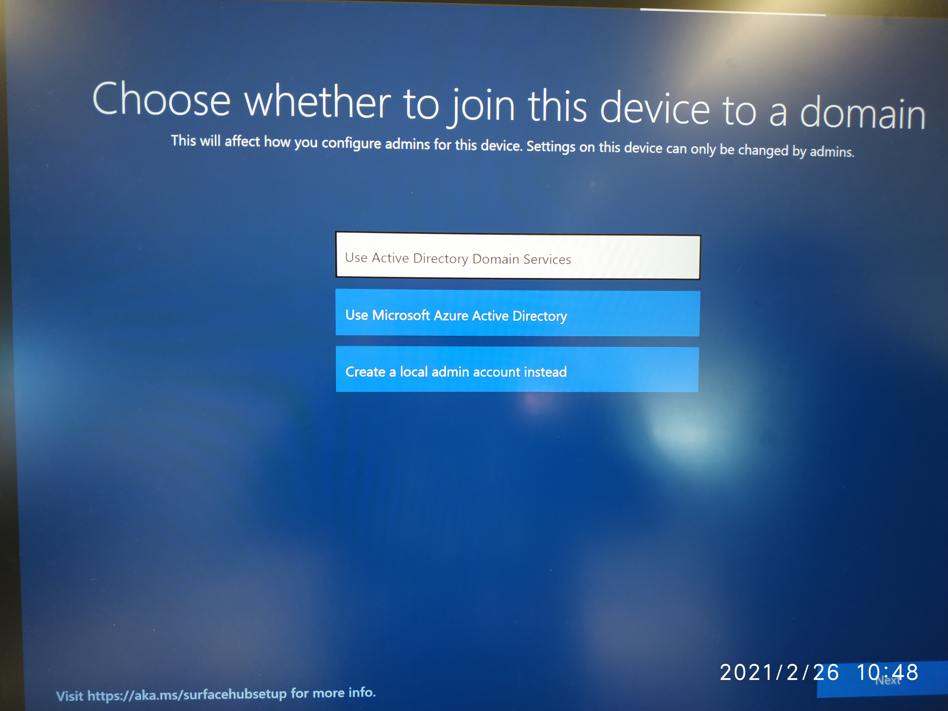 The 3rd restart will show us the ‘Out-of-the-Box’ setup screen for a Surface-Hub.