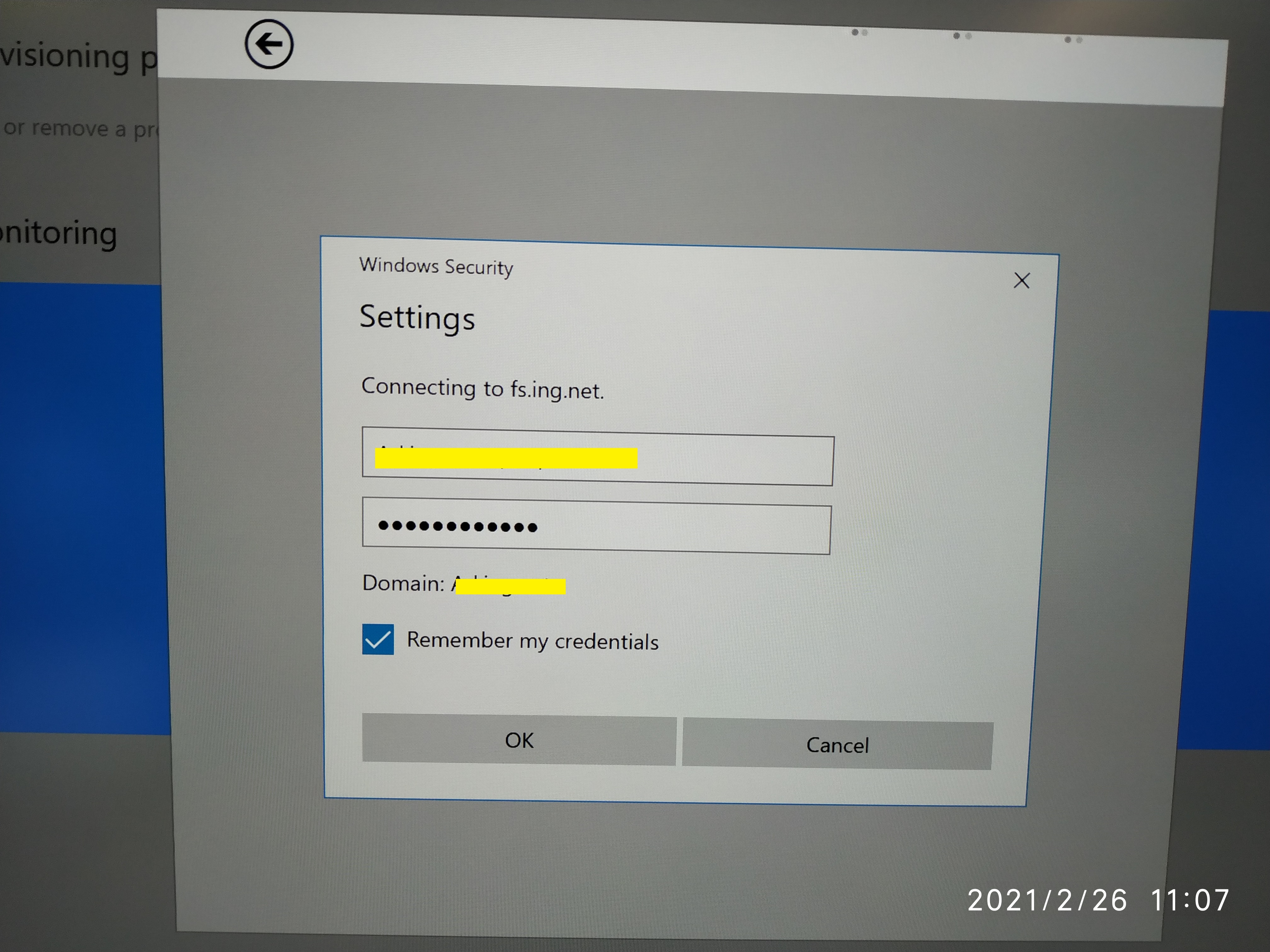 Now we have to setup the device account. Since we are behind a proxy, we have to authenticate to the local AD. For this we use the following naming convention: <FQDN Domain Name\SamAccountName> Example: x.y.z/samaccountname