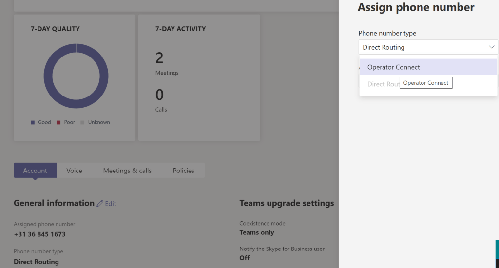 Here we have an option to switch directly from Direct Routing to Operator connect for a user.