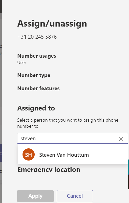 From the Phone number section after picking the number we have the option to select the user and assign the number. During this, we need to mandatorily select the emergency numbers and there is option to email user about his Phone Number details.