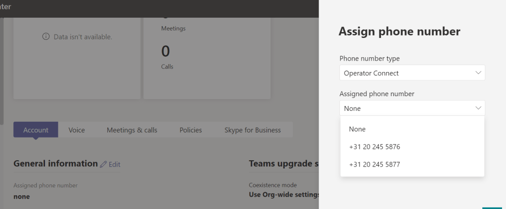 And after picking Operator Connect we can see all the numbers that is available for assignment. There will be automation script method for this for doing on a bulk deployment.