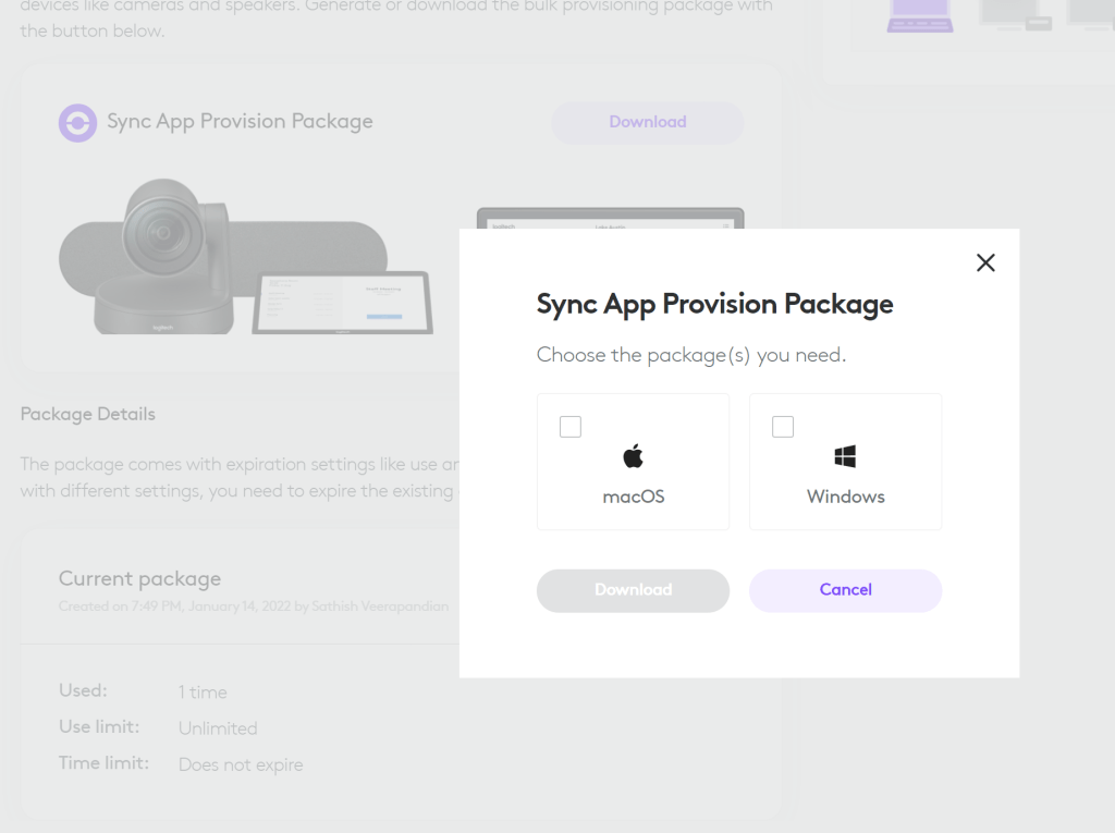 The moment when we signup for the Logitech sync the first option is to provision Sync App provisioning package on all the meeting room devices.