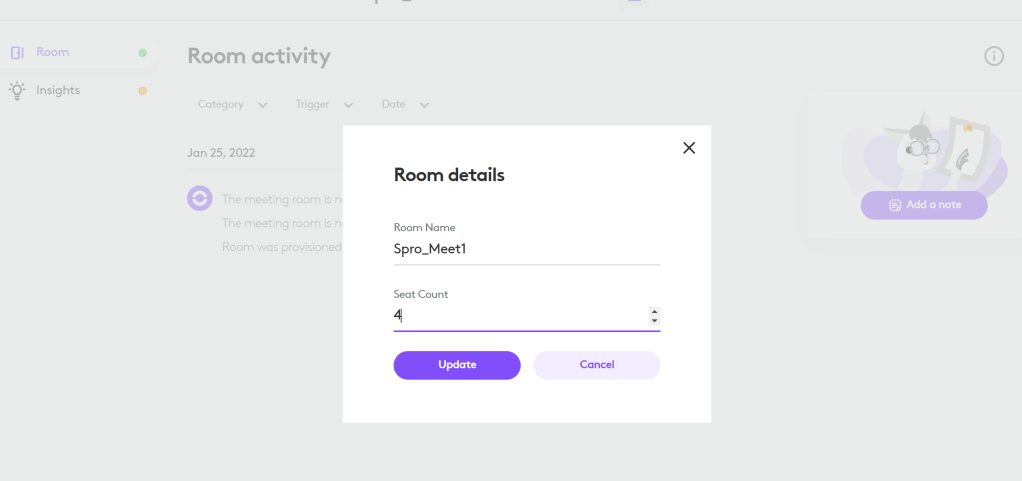 We have option to add the seat count manually here and provide names for each meeting rooms.