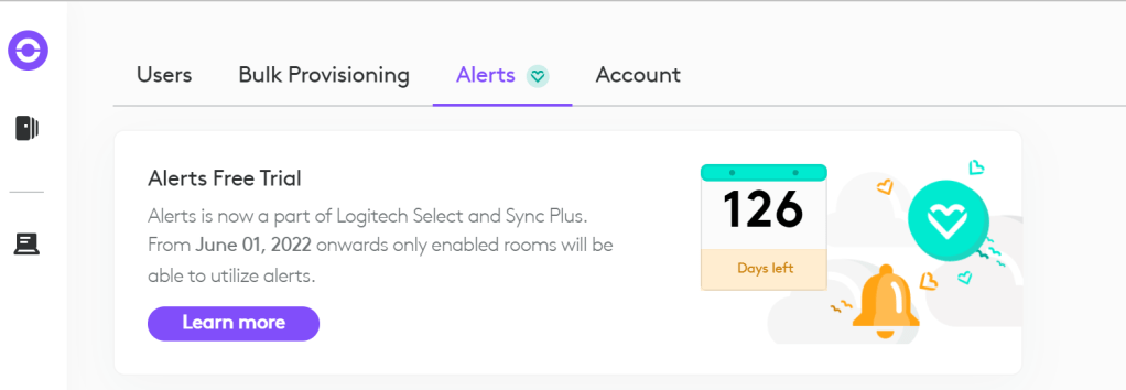 Furthermore we have option called alerts through which we can setup alerts for the enabled rooms that are provisioned before June 2022.