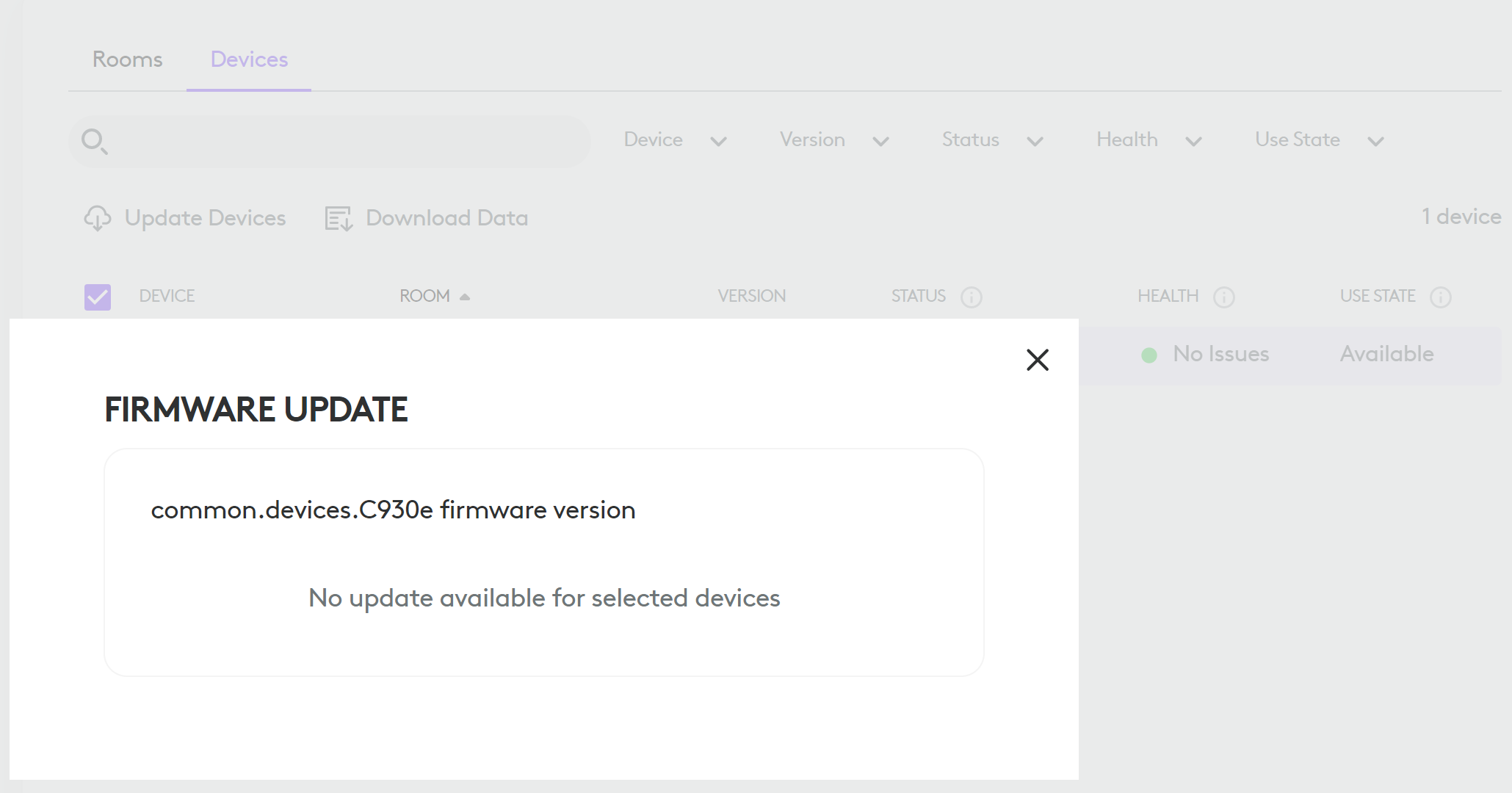 There is also devices section next to the rooms which provides information on the connected Logitech Peripherals. In my example have only C930e camera and that shows in the device section.
