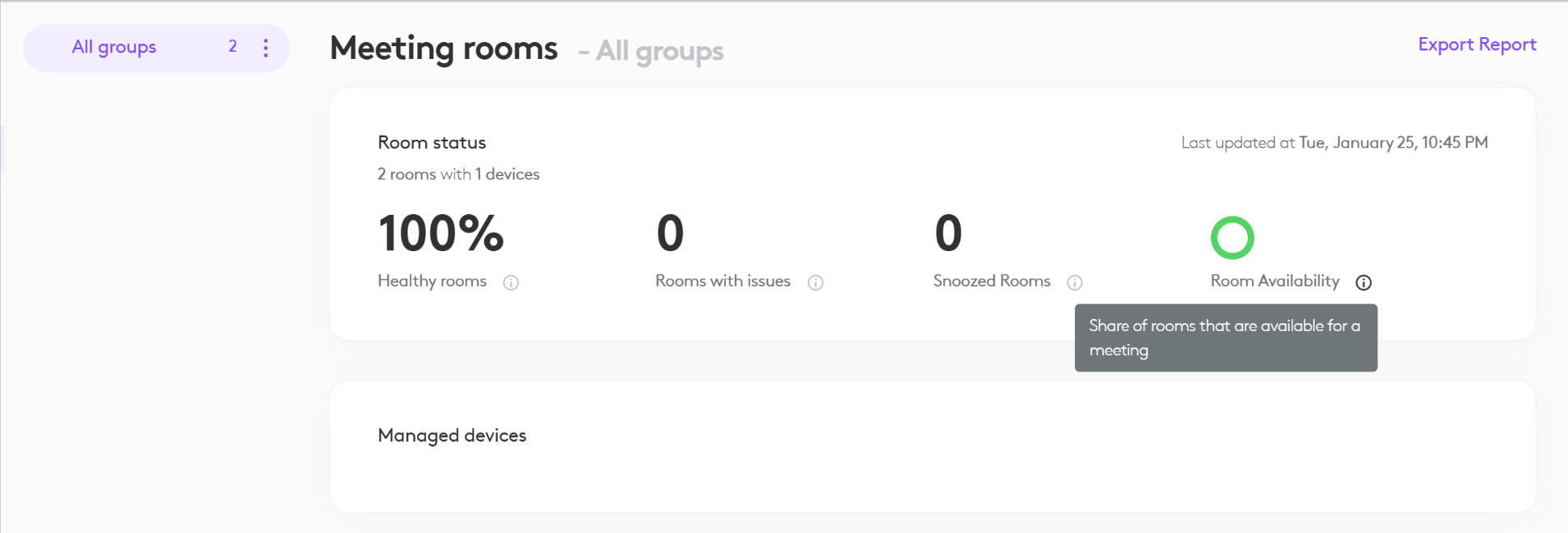 These above information appears to me to be extremely important information from the admin standpoint on getting a sneak peek at the overview of meeting room devices from a monitoring perspective. We do have an option for exporting this report which is of great beneficial to provide this to the required team.