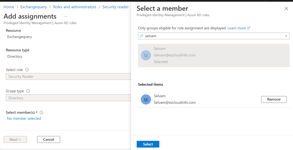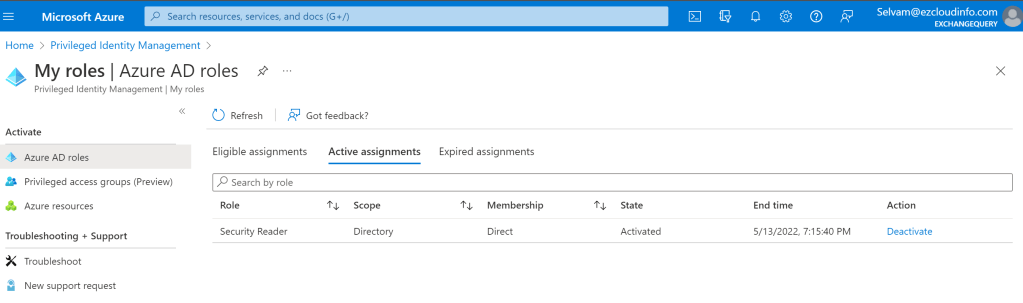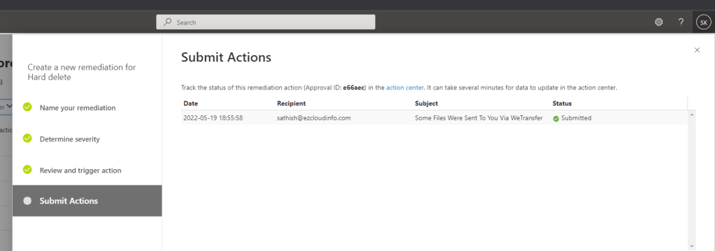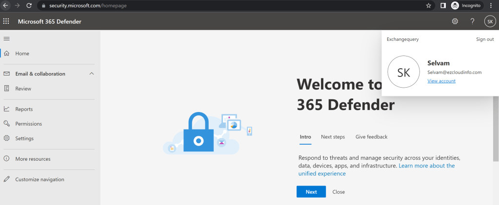 In our case in this demo we are going to run this example with a user called Selvam who does not have any access apart from a regular user privilege’s. In our example Selvam will be a SOC Admin who is responsible for searching and deleting suspicious emails when an incident is reported.