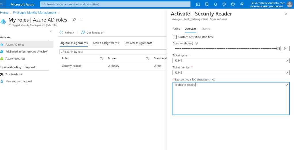 We will use PIM to grant just-in-time access to Defender for Office 365 related tasks