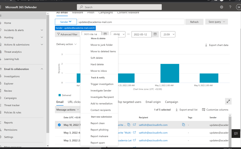 And finally Selvam is also able to delete any suspicious email with the correct trimmed down permission.